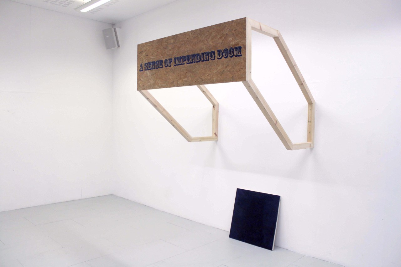 This is a Sense of Impending Doom, 2013, Enamel, Chipboard, Wood, 190x60x210cm, Acrylic and enamel on canvas, 50x50cm Date: March 17, 2014Author: lewisblake Category: 2013, Sculpture Post navigation ← Frame (three), 2014, Inkjet print on recycled canvas, 80x140cm Brian and wine, 2014, oil on board, 37x45cm → This is a Sense of Impending Doom, 2013, Enamel, Chipboard, Wood, 190x60x210cm, Acrylic and enamel on canvas, 50x50cm Share this: Click to share on X (Opens in new window) X Click to share on Facebook (Opens in new window) Facebook Like Loading... Related